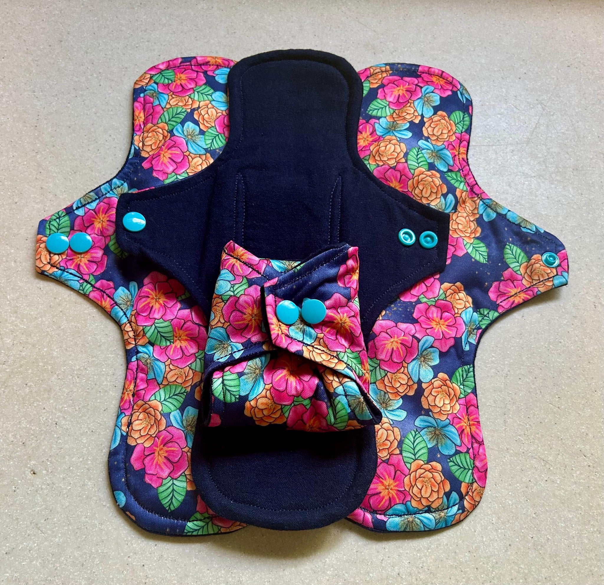 Navy/Tropical Flowers Organic Top Cloth Pad