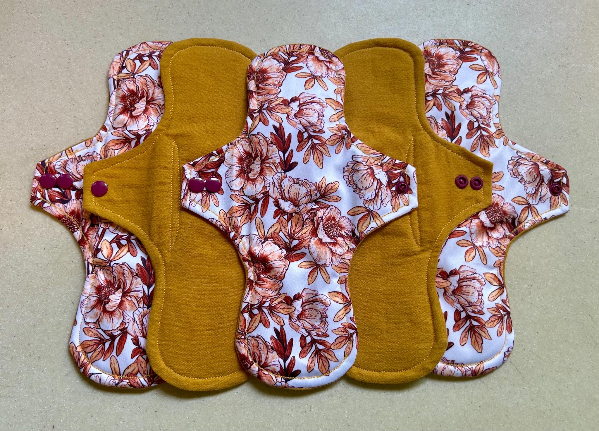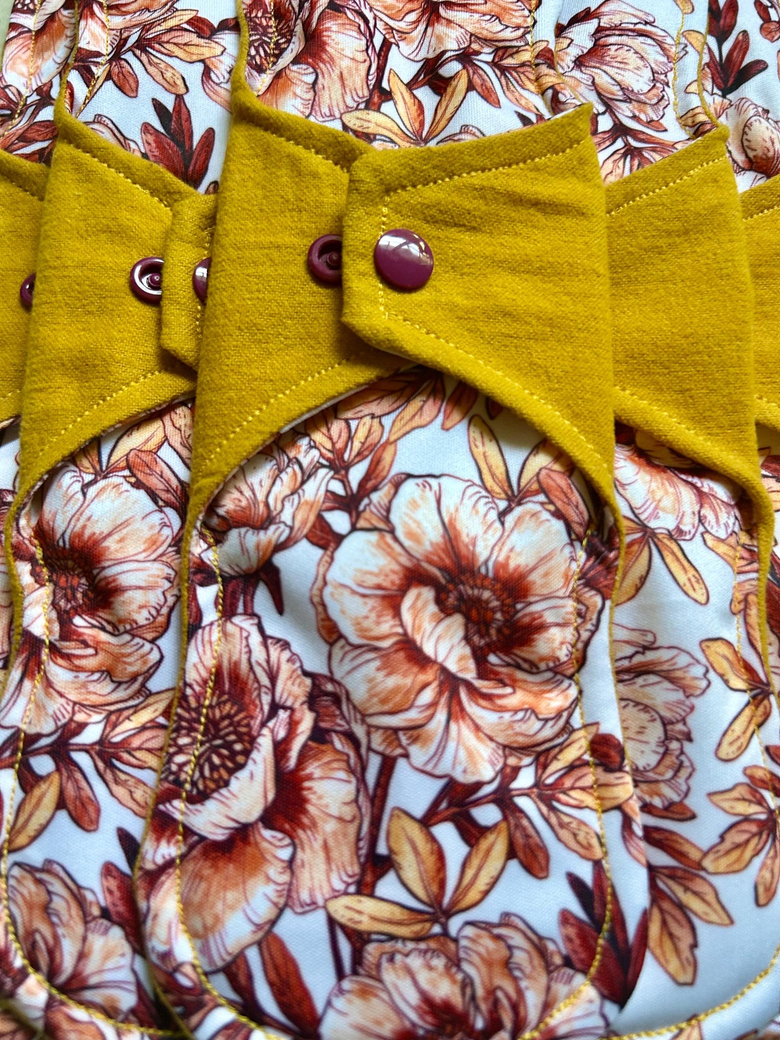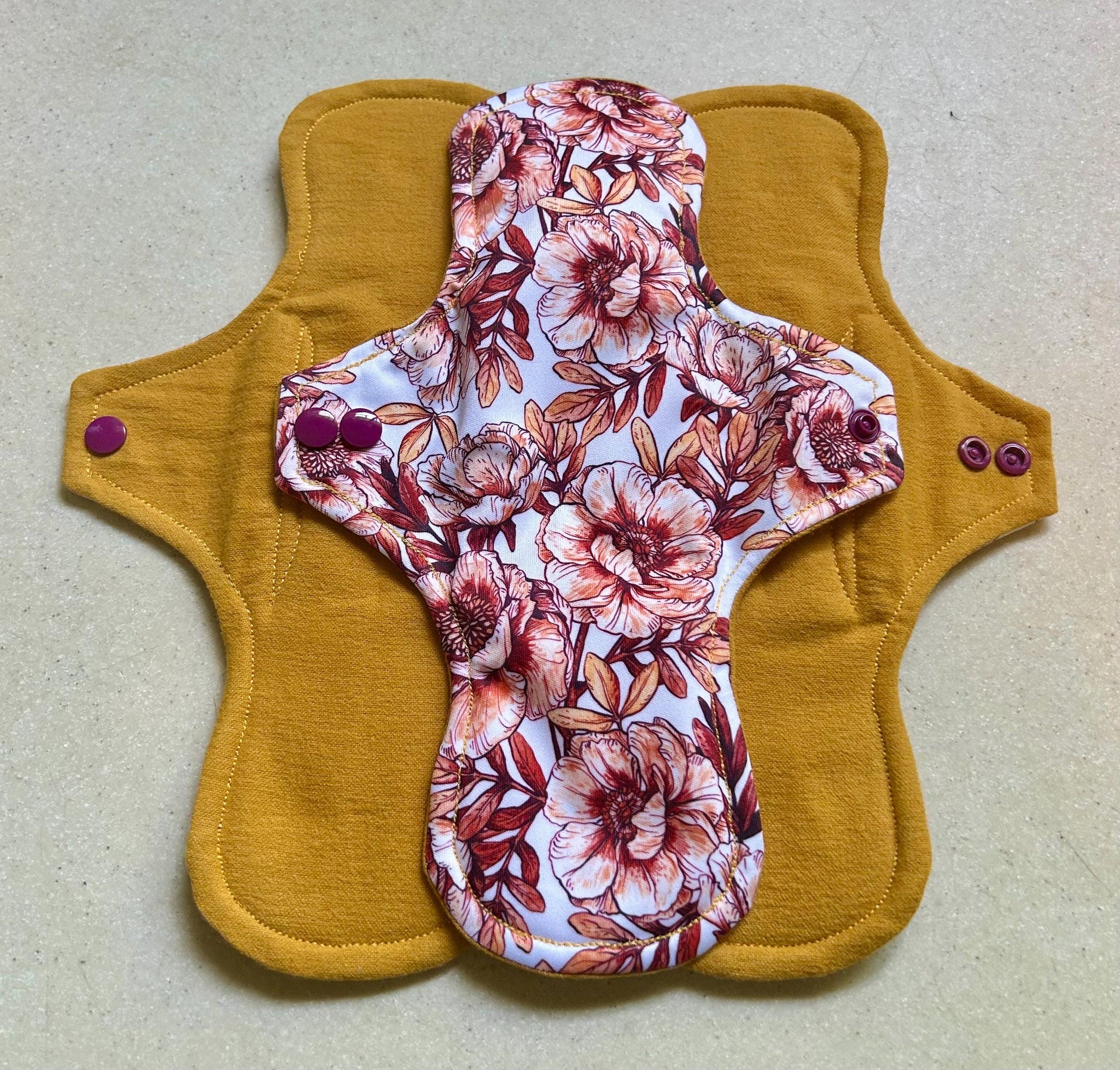Ready To Ship 11” Heavy Overnight Organic Top Cloth Pad Yellow/Flowers