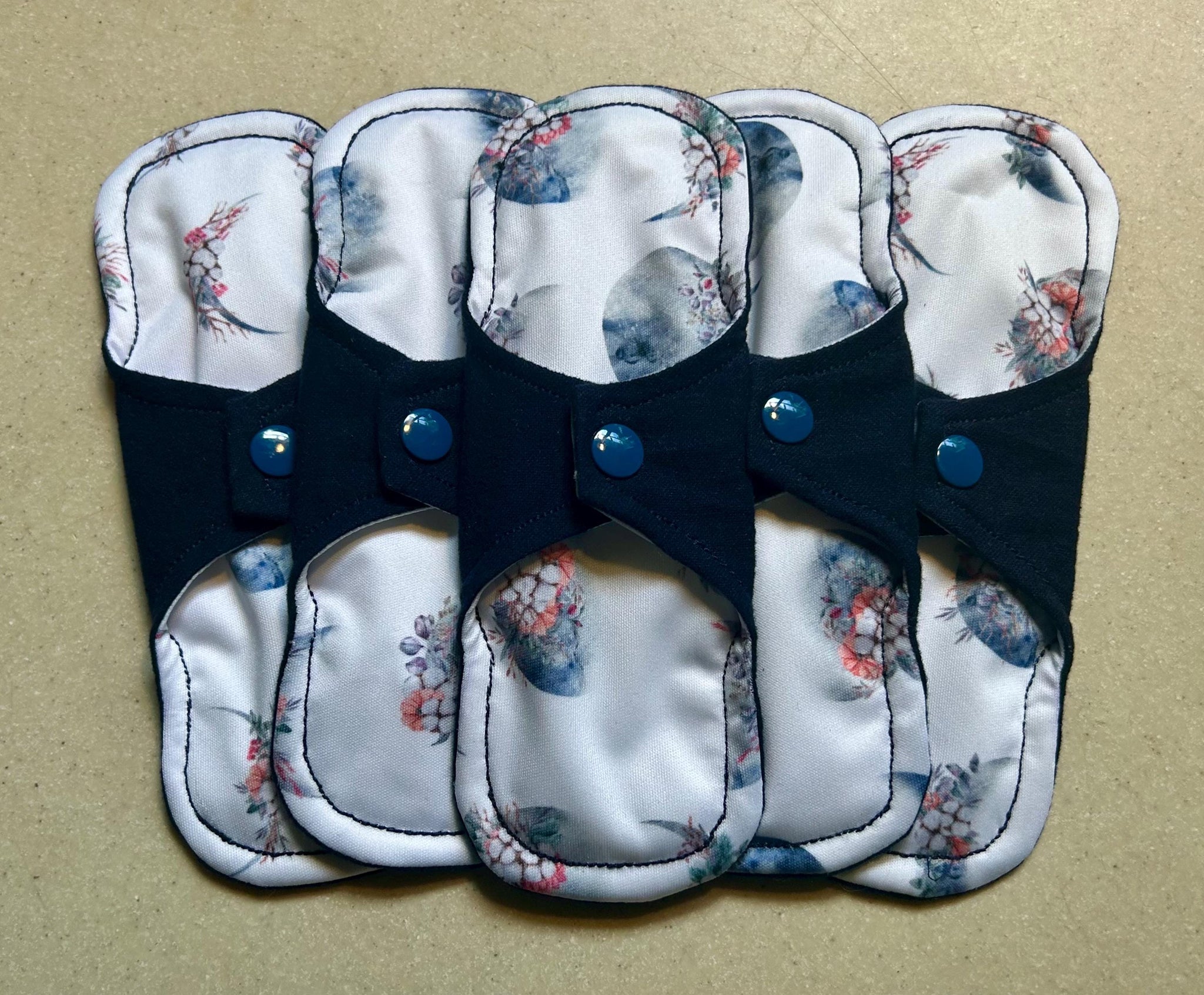 Ready to ship 7” moderate cloth pad organic fleece core washable and reusable sanitary napkin cloth pads priced per pad