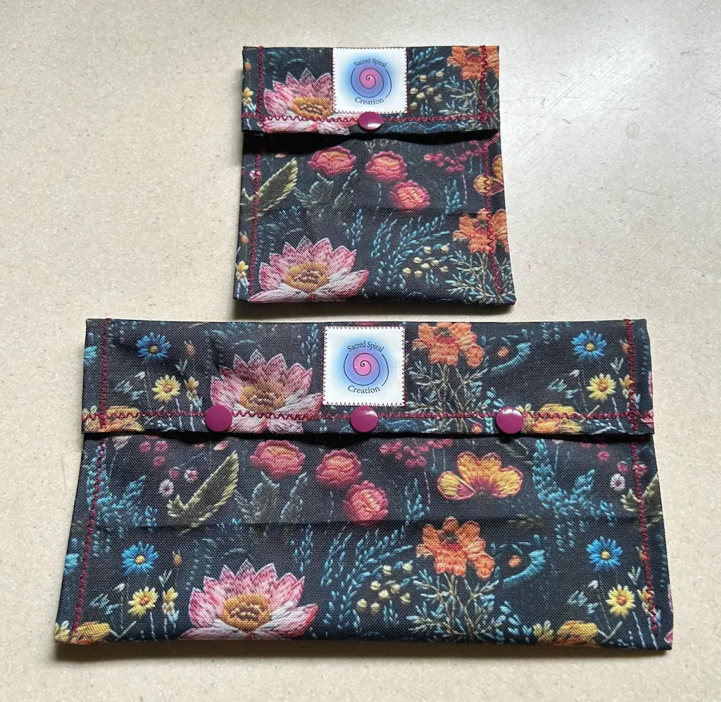 Wet bag perfect for storage of dry or used pads. Snaps closed.